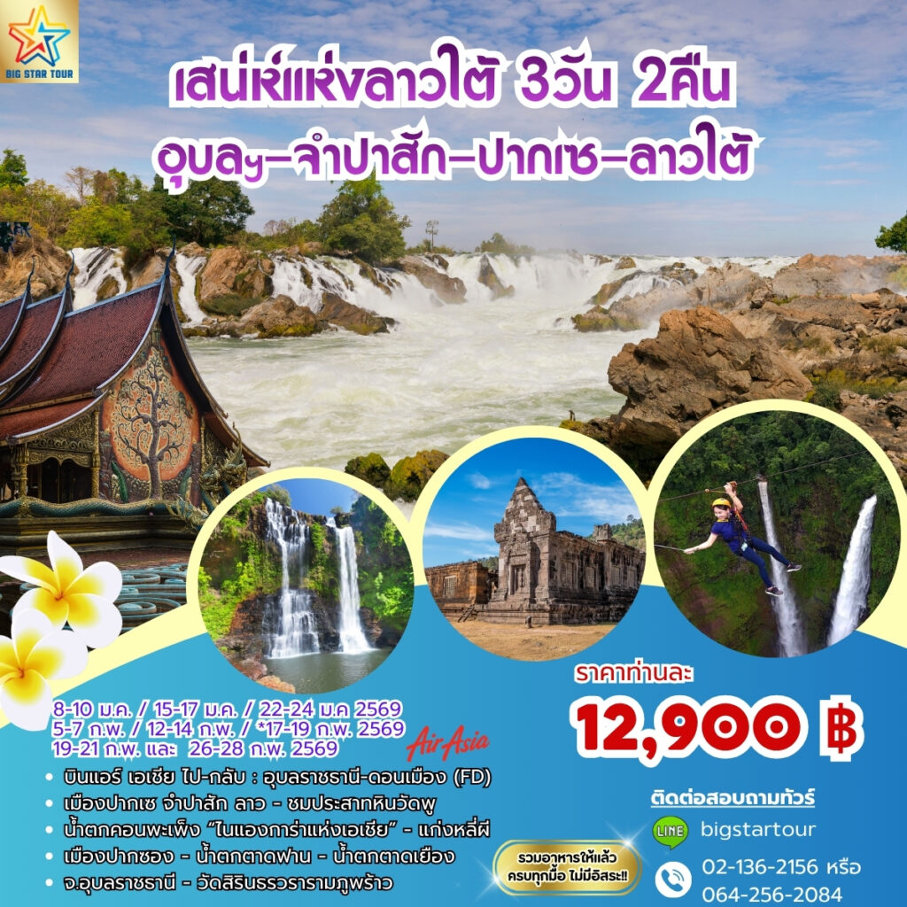 เสน่ห์แห่งลาวใต้ ไนแองการ่าแห่งเอเชีย (หลี่ผี – น้ำตกคอนพะเพ็ง – ปราสาทวัดพู) | 3 วัน 2 คืน